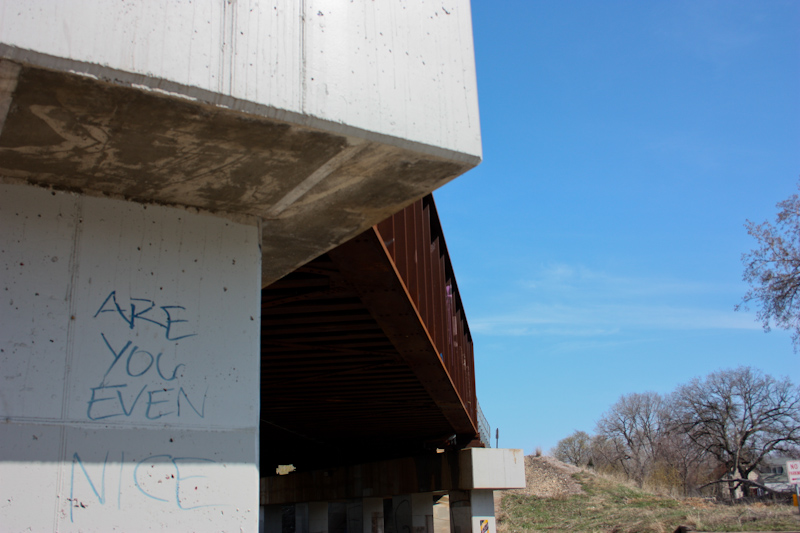 Como and 23rd Ave SE, Minneapolis, MN, under the railroad bridge.